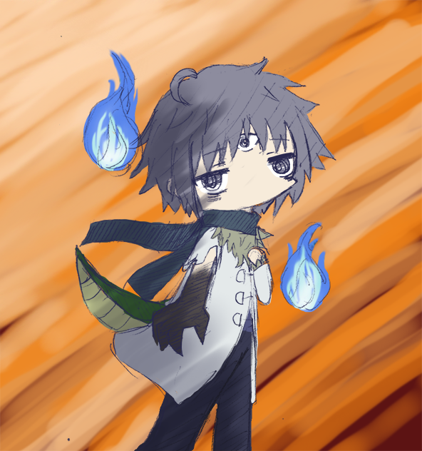 とある日の依くん。毛皮、火玉、竜尾、鬼腕、三ツ目。