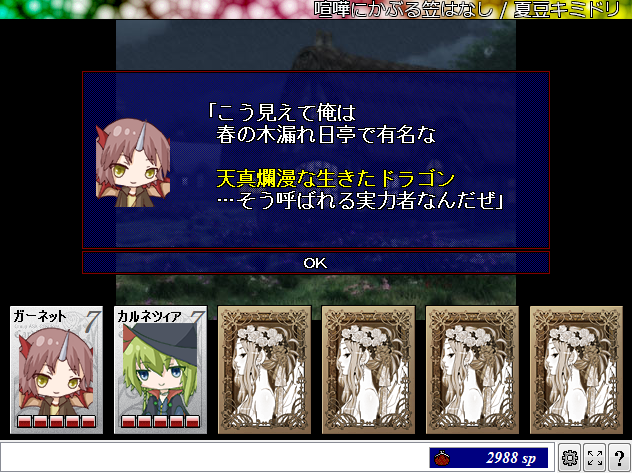 普段はカルとフィズを喧嘩仲間にしているのですが、このシナリオは発端が発端なので()ガーネットとフィズにしてみた。その結果がこれだよ!!www