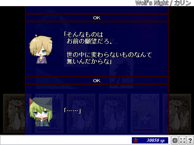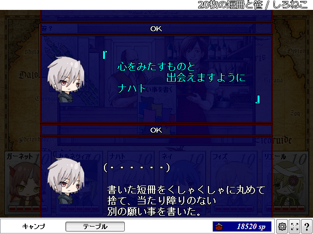 枯れぬ花の庭/星の距離を超えて/見知らぬ仲間/Wolf's Night/星照/風のレゾナンス/20枚の短冊と笹/砂を駆る風となれ/宿の地下の怪