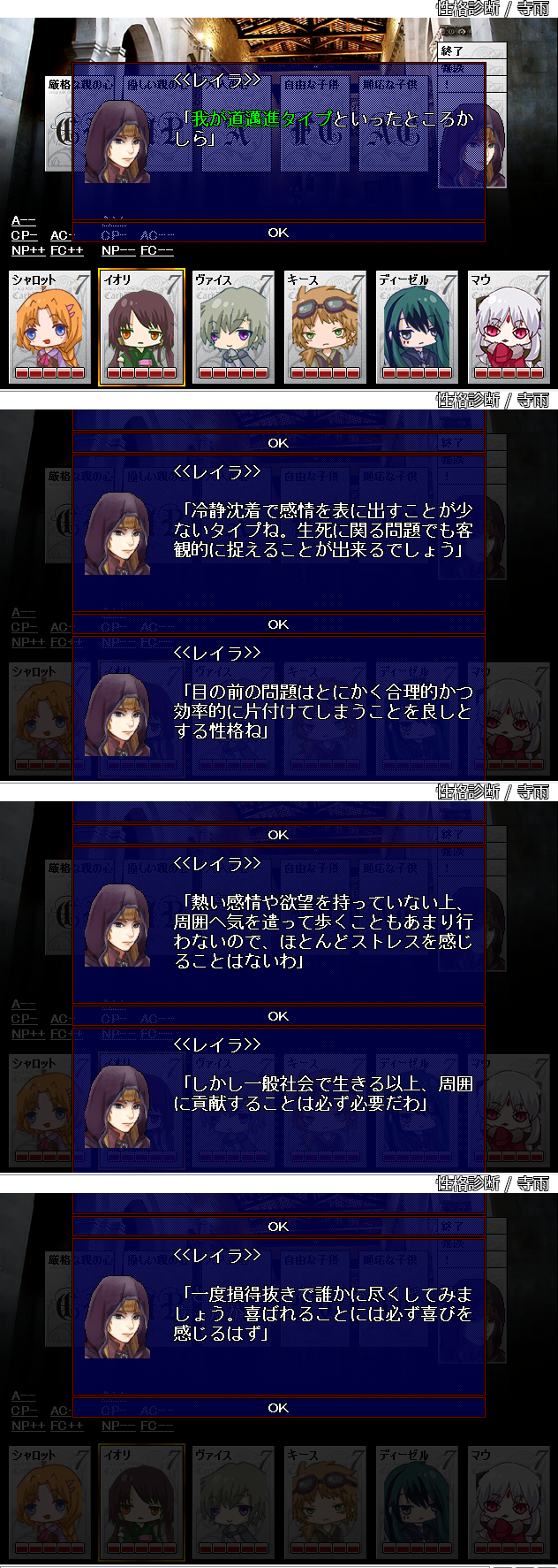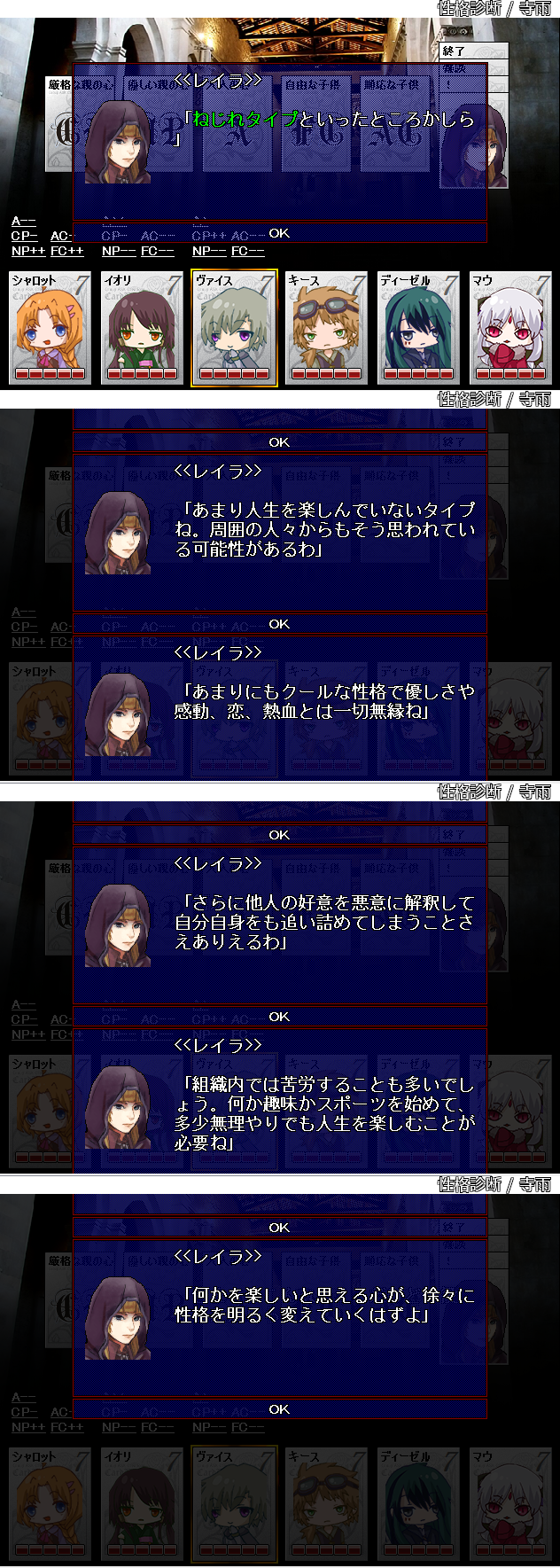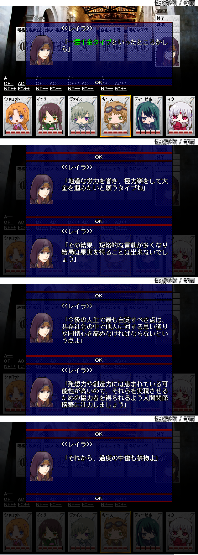 〈貧乏/厚き信仰/秩序派/進取派/神経質/過激/上品/武骨〉