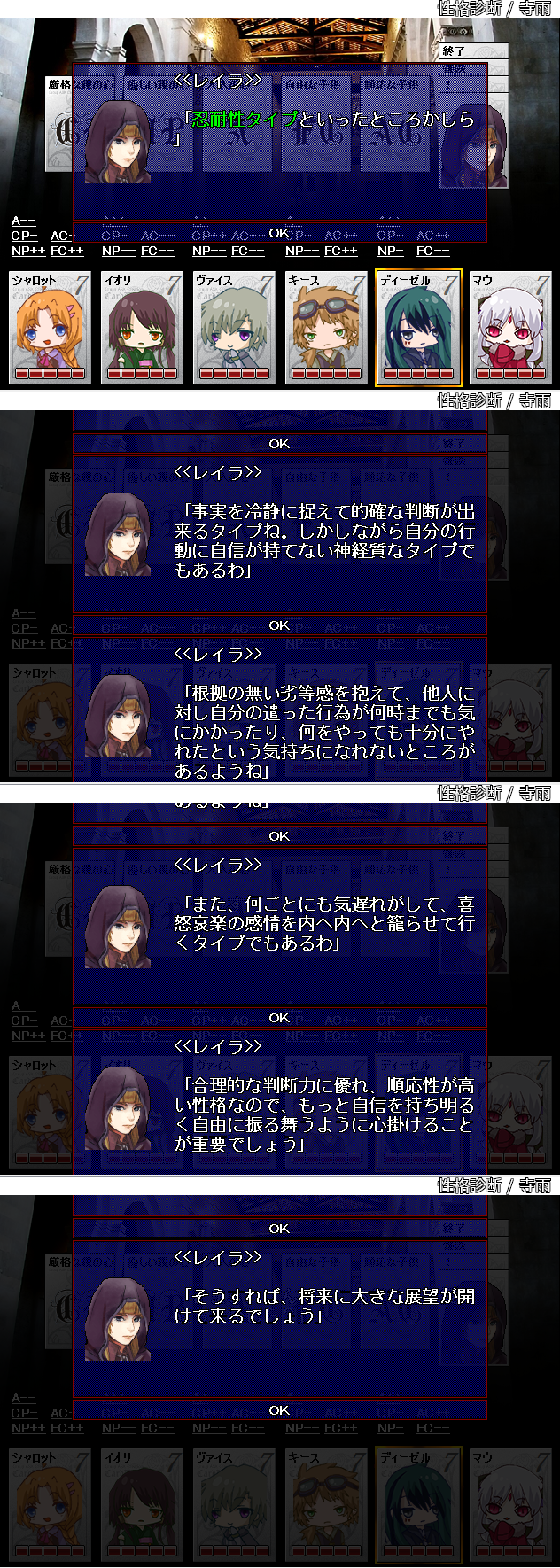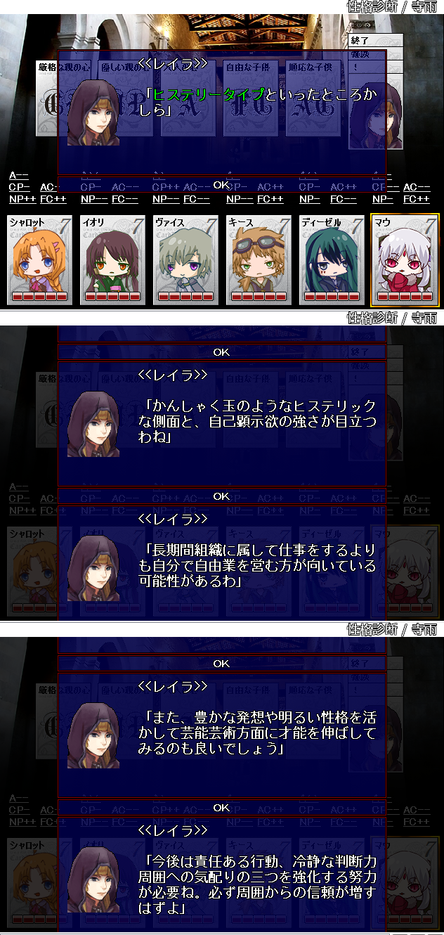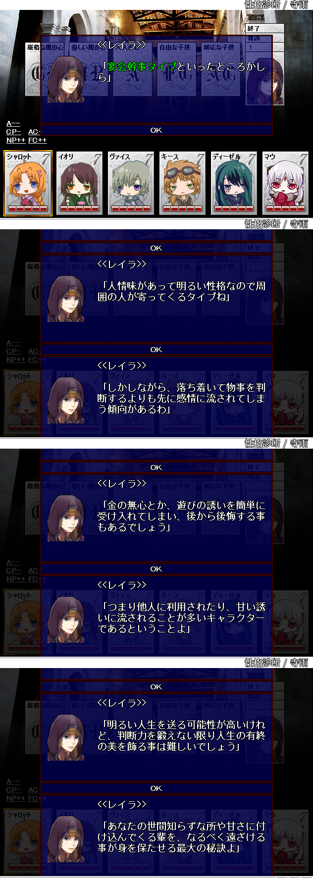 〈貧乏/厚き信仰/秩序派/進取派/神経質/過激/上品/武骨〉