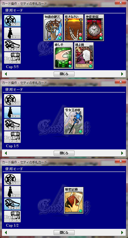 超能力とか魔法とか。結構カラフルな雰囲気の手札多め。バフから回復、攻撃解錠までなんでもござれ。